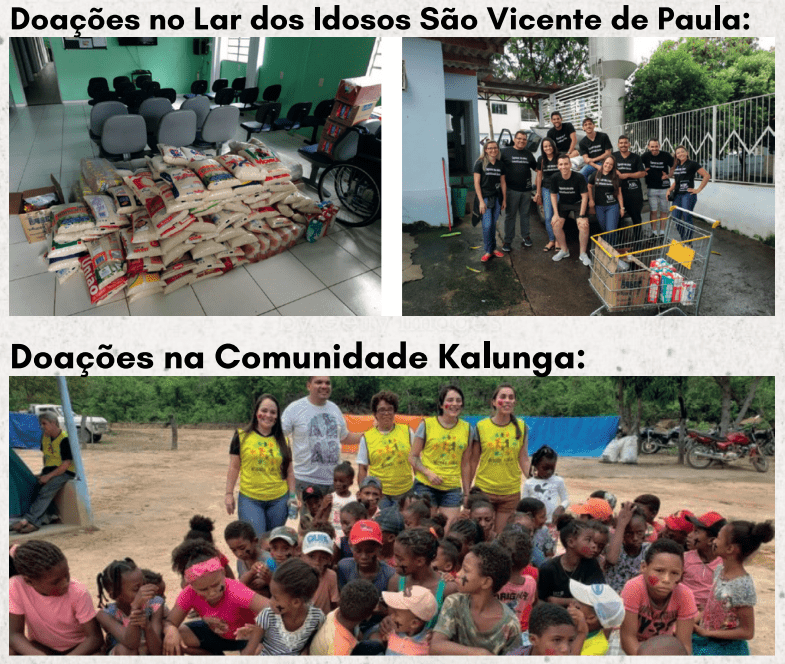 As doações no ano de 2018 foram direcionadas para o Lar dos Idosos São Vicente de Paula e Comunidade Kalunga (Cavalcante).